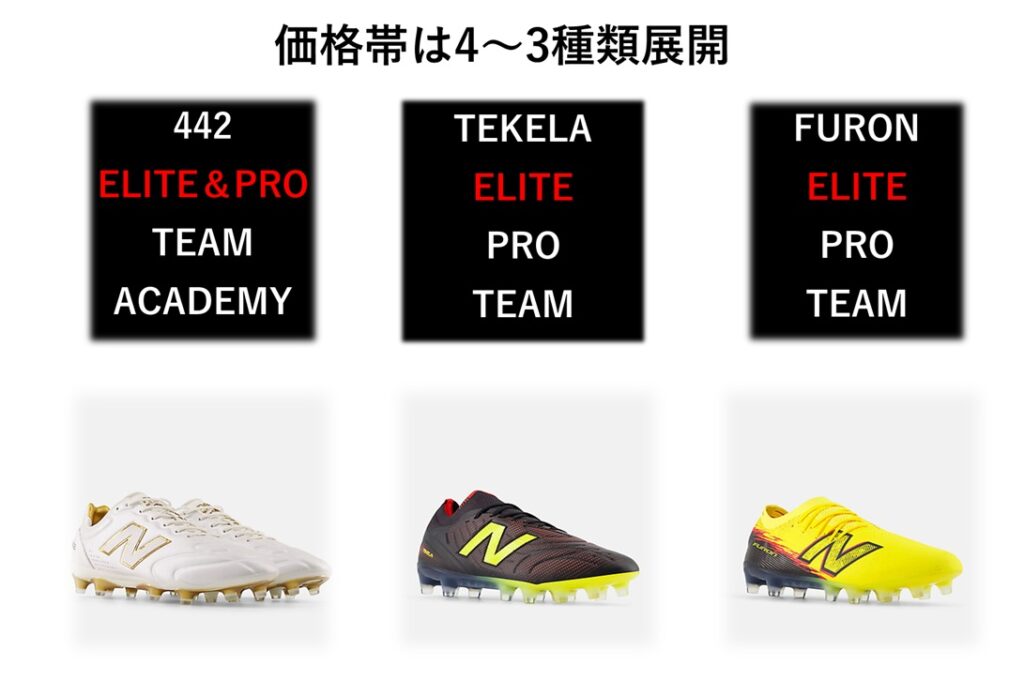 まず、ニューバランスのサッカースパイクは、大きく分けて3つのシリーズに分けられています。