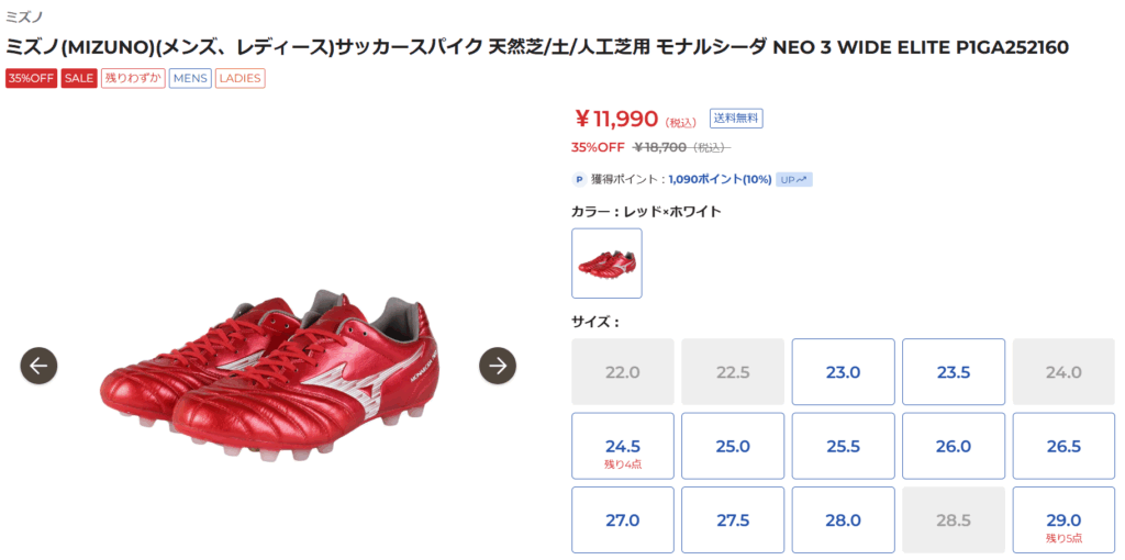ミズノのサッカースパイク、モナルシーダNEO3ですが