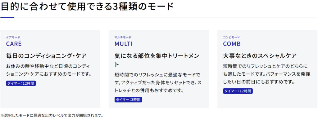 そして、効果としては身体に感じない程度の微弱な電流を流すことで、リカバリーを早める製品となっています。