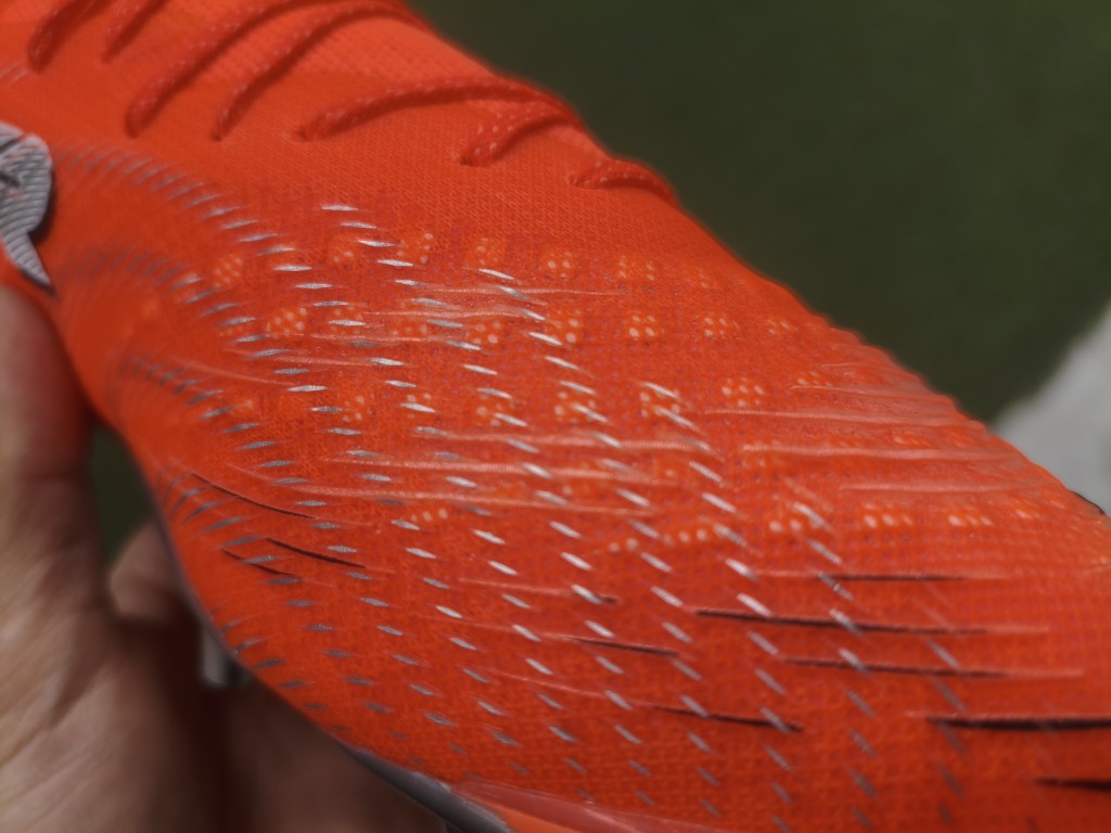 つまるところ、メッシュやニットのアッパーに表面にはグリップしやすい樹脂フィルムを乗せた仕様です。