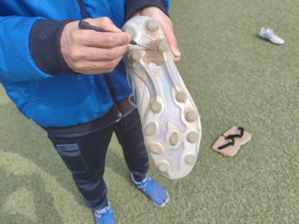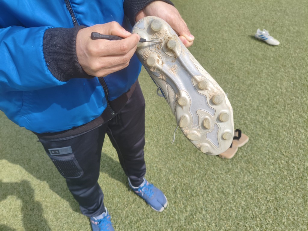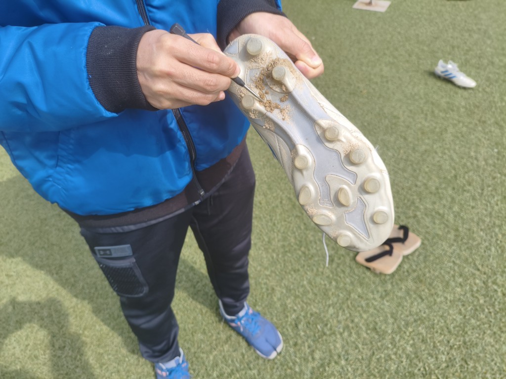 そして実際に学生のスパイクを借りて、メンテナンスを実施。