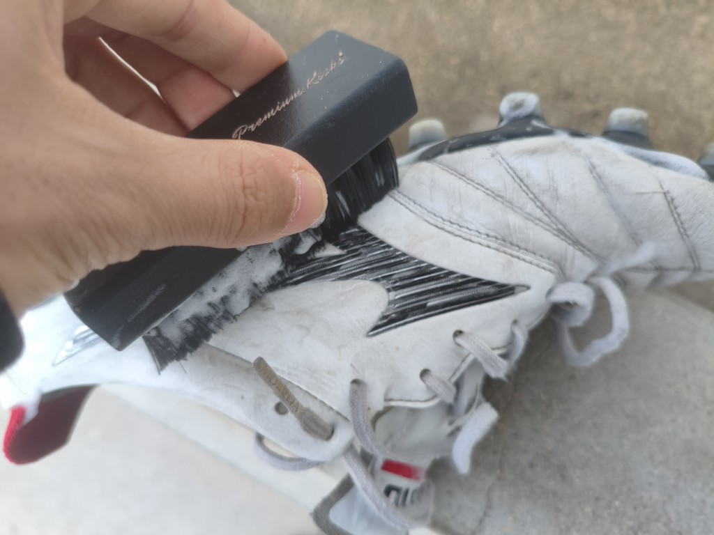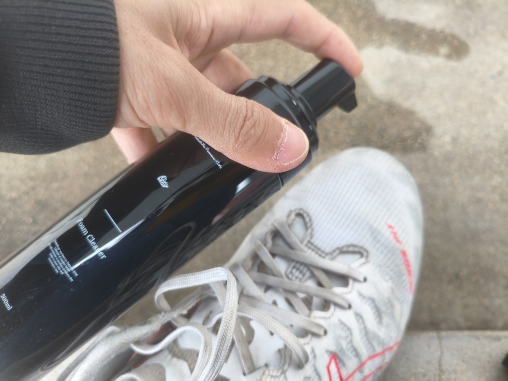 普通にKicksWrapのフォームクリーナーを使えば、こういう汚れの飛び散りもないので、十分なスペースがありました。