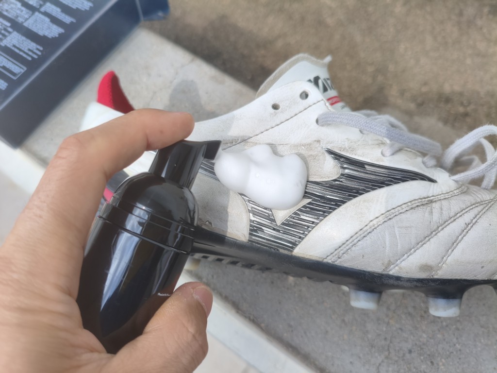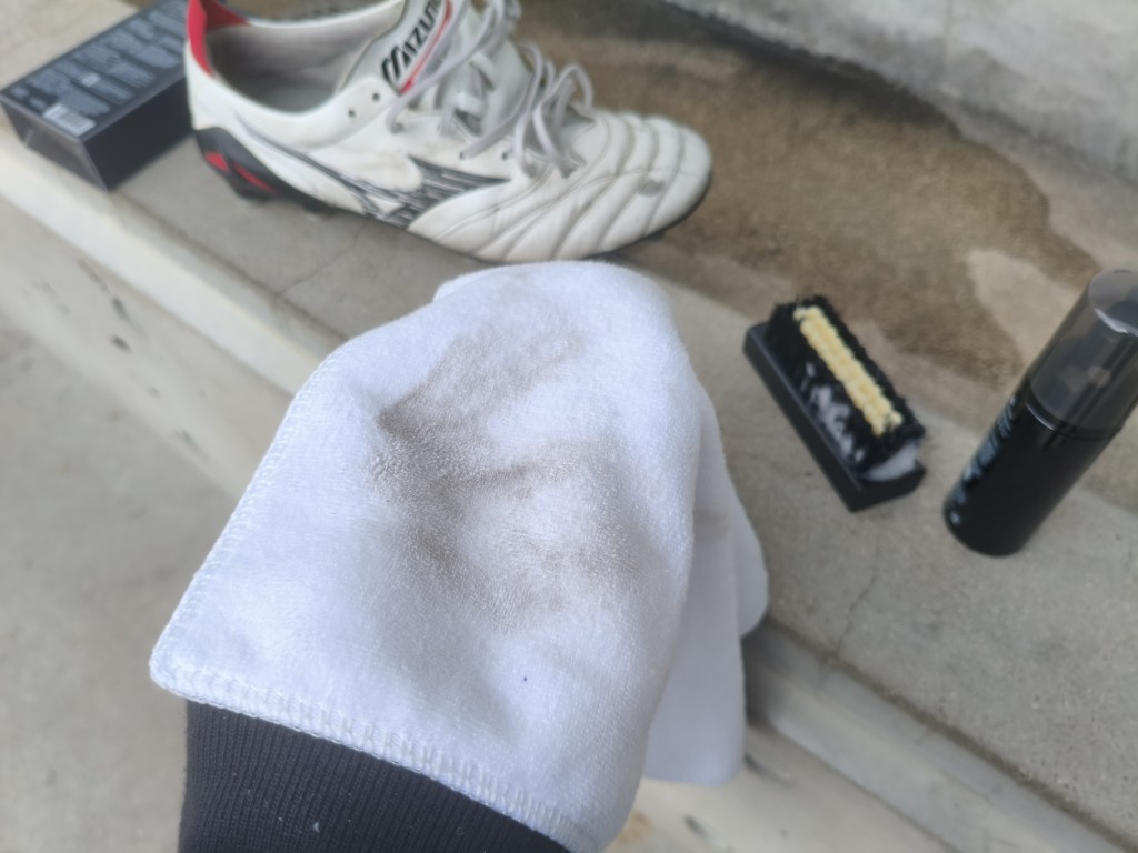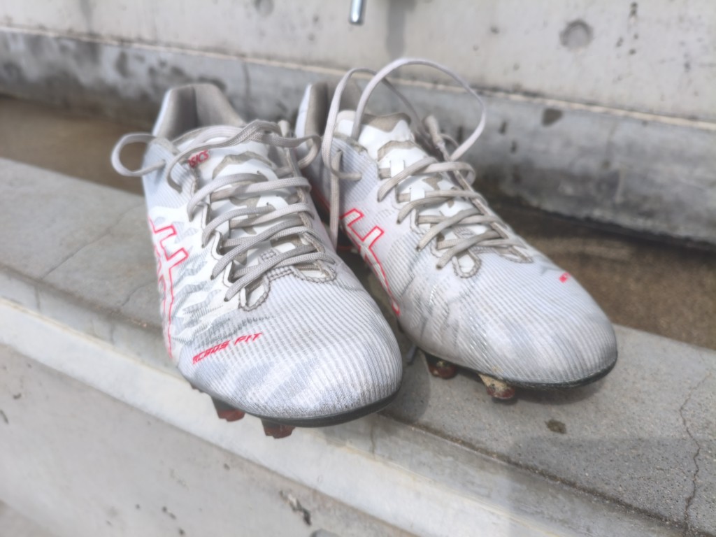 そして今回はミズノのサッカースパイク、モレリアネオⅣの汚れをステインリムーバーで除去してみました。