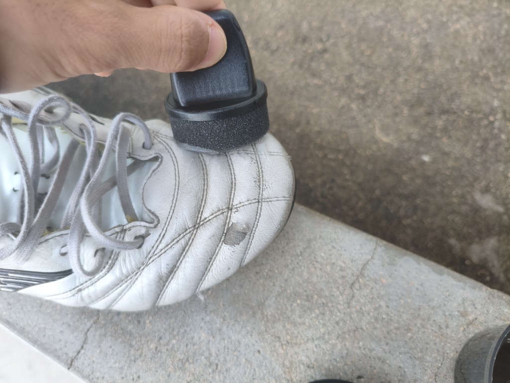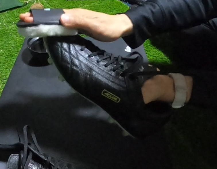 今回はモレリアネオⅣの右足をKicksWrap製品で綺麗にしてから、クリームを塗りました。