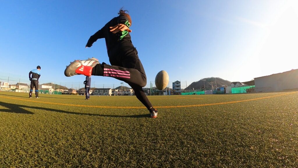 ラグビーボールの蹴り心地も、ダイレクトで弾き飛ぶ感覚が強い印象。