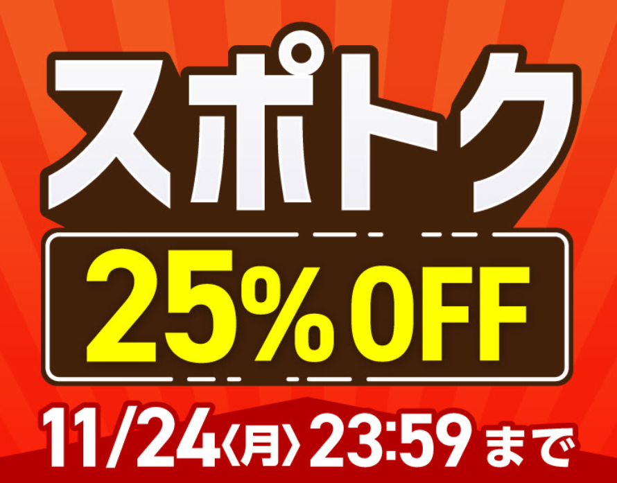 スパイクなど 定番製品が25%OFFになるクーポンセールが開催