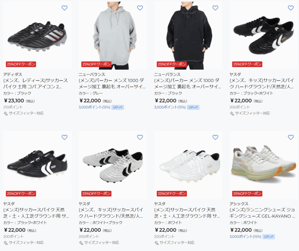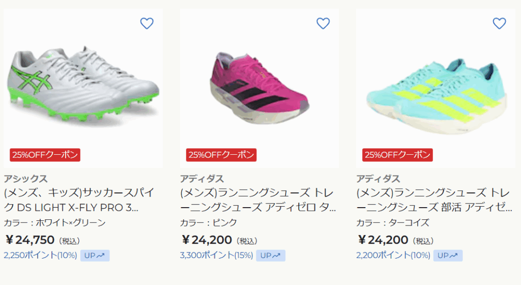 サッカースパイクなど、様々な製品が対象なのですが