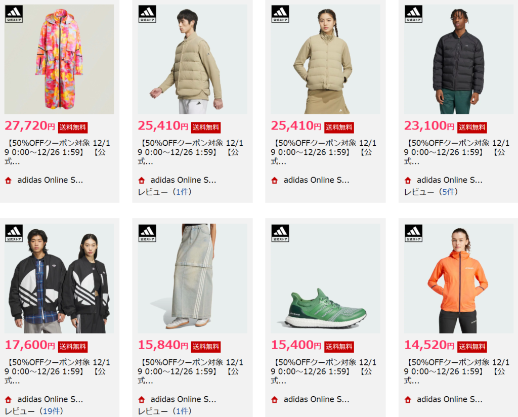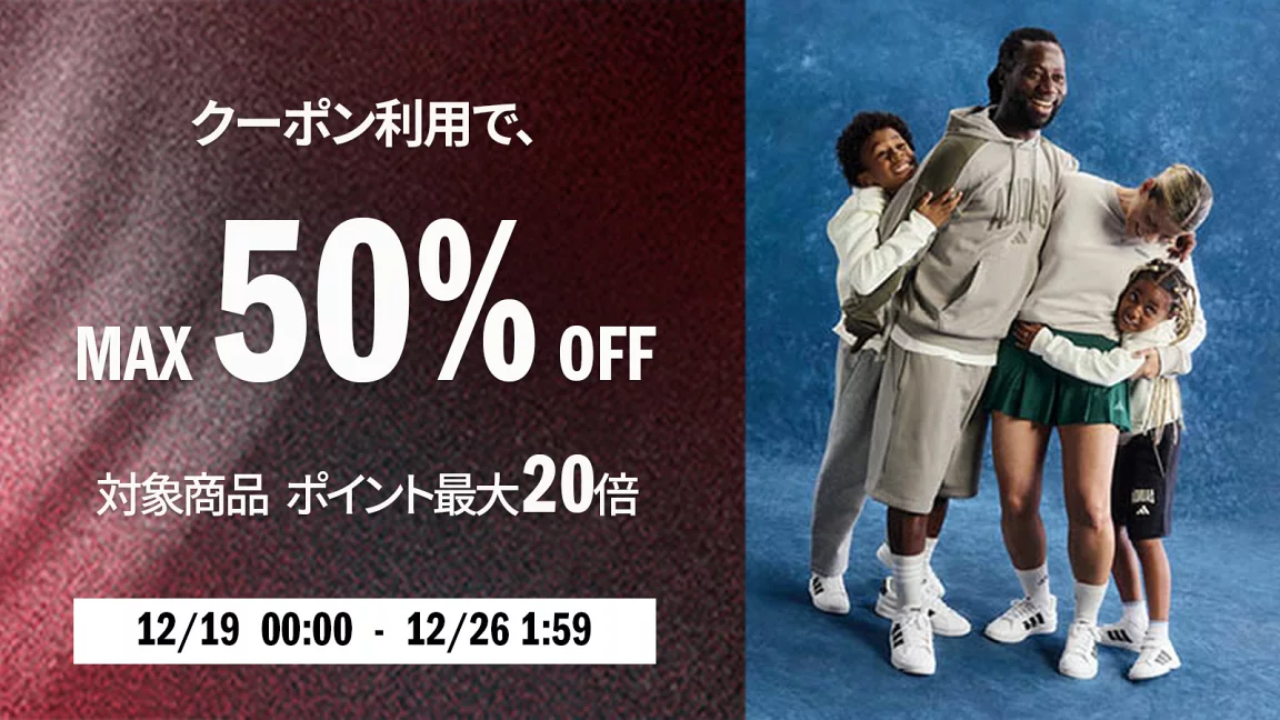 12/26まで アディダス 表示価格から更にMAX50%OFFセールが開催!