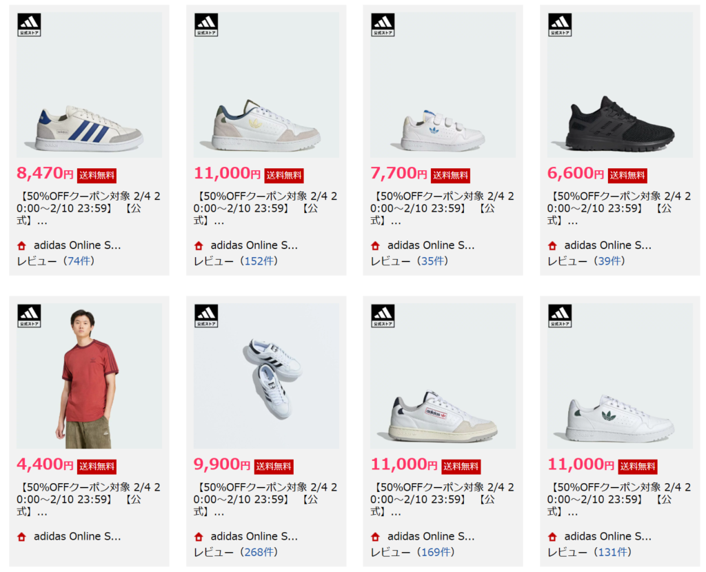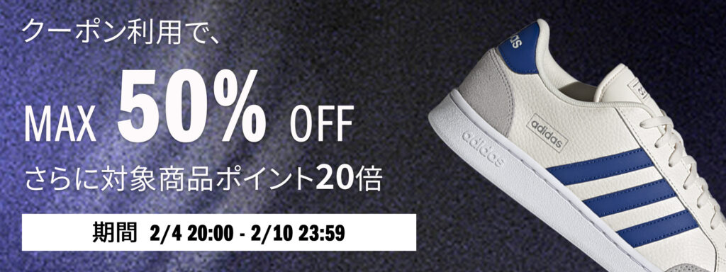 2/10まで アディダス 表示価格から更にMAX50%OFFセールが開催!