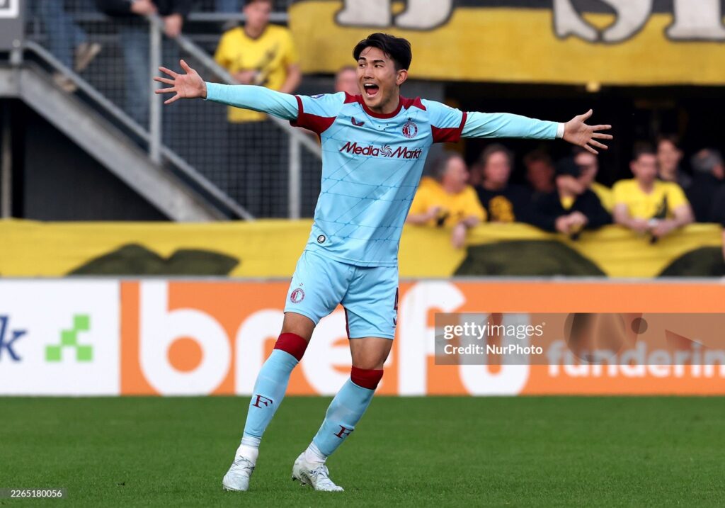 Feyenoord player Tsuyoshi Watanabe participates in the Dutch Eredivisie match between NAC and Feyenoord at Rat Verlegh Stadium in Breda, Netherlands, on March 8, 2026. (Photo by Peter Lous / EYE4IMAGES/NurPhoto via Getty Images)