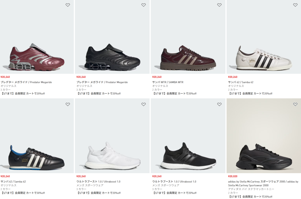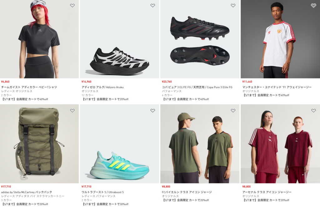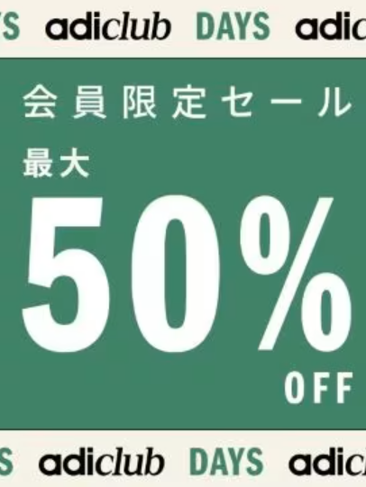 5/7まで アディダス 50%OFFの会員限定セールが開催!