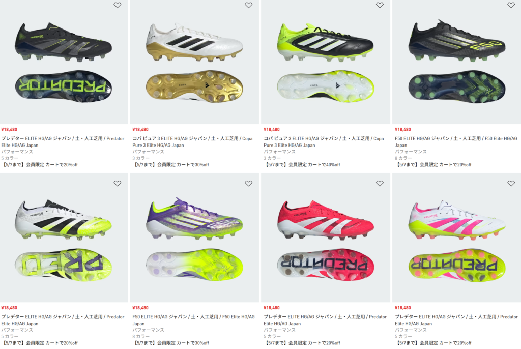 中にはプレデターメガライドといったシューズも対象になっています。