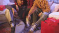 このように、謎のホワイト×ネイビーのスパイクを着用し始めています!