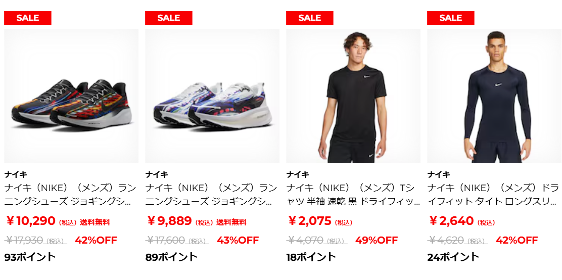 ブランドはナイキ、アディダス、ニューバランス、アンダーアーマー、プーマ、オークリーなど。
