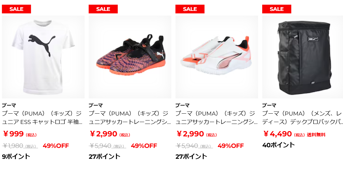 例えばサッカー用品だと、プーマのジュニアトレシューが49%OFFという価格。