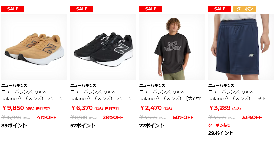 他にもニューバランスだと、部活生もよく履いてそうなシューズやウェアがセールに。