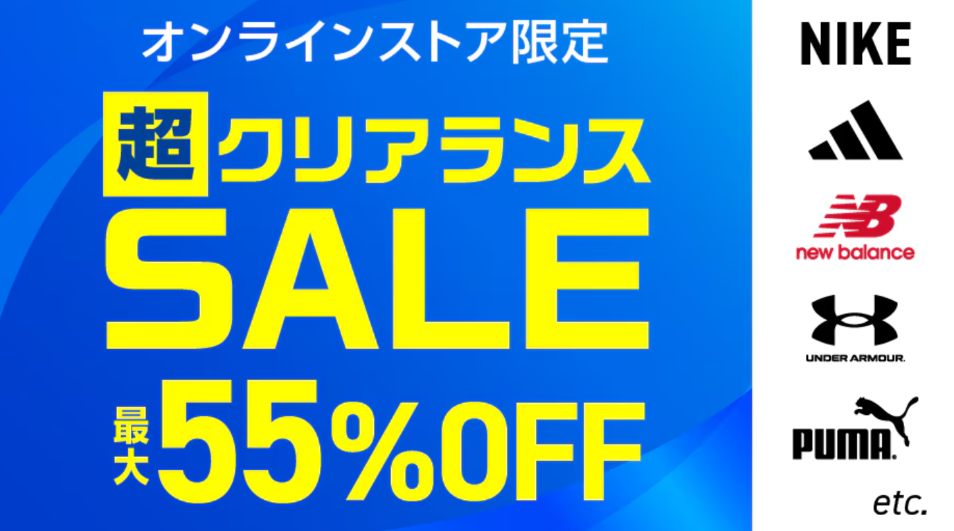 オンラインストア限定で、超クリアランスセールと題したセールが開催となっています。