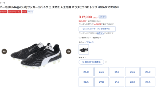 お買い得情報 9/25まで プーマ パラメヒコが激安価格で販売開始!!! プーマのサッカースパイク、パラメヒコリメイクされてパラメヒコトップSEとして販売されていますが、※アフィリエイト広告を含みますこのように17900円、そこからクーポン利用で14320円となっています!基本的に定価で販売だったので、かなり嬉し... 2025.09.25 お買い得情報